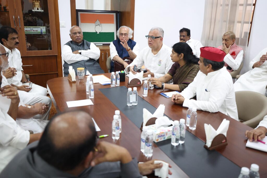 जयराम रमेश ने पत्रकारों को संबोधित करते हुए कहा- नमस्कार साथियों. आप का स्वागत है. अभी विपक्ष पार्टियों की ओर से कांग्रेस अध्यक्षमल्लिकार्जुन खरगे जी एक महत्वपूर्ण घोषणा करने वाले हैं. मैं खरगे साहब से गुजारिश करूंगा कि वो आपको संबोधित करें. मल्लिकार्जुन खरगे नेकहा कि इस मंच पर बैठे हुए सभी पार्टी के नेतागण और यहाँ पर पधारे हुए हमारे मीडिया के दोस्तों और सभी पार्टी के और भी नेतागण… हम सभीपार्टियों ने मिलकर एक कॉमन कैंडिडेट को इस वाइस प्रेजिडेंट इलेक्शन में खड़े करने का निर्णय लिया है और वो निर्णय युनेनिमसली हमने किया है. मुझे खुशी होती है कि सभी अपोजिशन पार्टी एक होकर, एक नाम पर अगर मिलकर लड़ने के लिए तैयार हैं, तो ये बहुत बड़ी अचीवमेंट डेमोक्रेसी कीऔर लोकतंत्र की है, क्योंकि जब कभी भी लोकतंत्र और संविधान खतरे में होता है, तो अपोजिशन के लोग एक होकर अन्याय के खिलाफ लड़ते हैं.