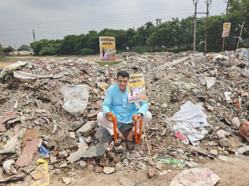 Pointing to the worsening conditions, he continued, “Heaps of garbage, debris and silt have accumulated in Nirankari Ground. This dumping is being done jointly by MCD, PWD and Delhi Jal Board. BJP’s ‘Delhi Ko Kude Se Aazadi’ campaign is only on paper and for show. This campaign is supposed to run from 1 August to 31 August, yet mountains of garbage are rising in Majlis Park, Ramghat in Wazirabad, and now Nirankari Ground as well, all within the Civil Lines Zone. Mayor Raja Iqbal Singh himself comes from the Civil Lines Zone, and this is the third garbage mountain within just two kilometres of his house.” Citing BJP councillors’ own admissions, Ankush Narang said, “In the MCD Standing Committee meeting, BJP councillors themselves accepted that garbage is piling up in Central, South and West Zones. If the Mayor cannot keep his own zone clean, how will he clean the whole of Delhi? Who is allowing these garbage mountains to be created? Has CM Rekha Gupta, BJP Delhi President Virendra Sachdeva, or someone else directed that garbage mountains be made? BJP should stop lifting brooms only for photo ops, and instead get cleaning done at vulnerable points.”